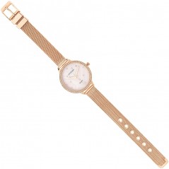 CASSA: metallo rose gold di diametro 34mm, lunetta con cristalli bianchi, vetro minerale, corona zigrinata chiusa a pressione IMPERMEABILITÀ: WATER-RESISTANT