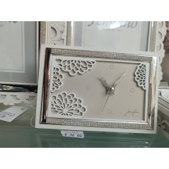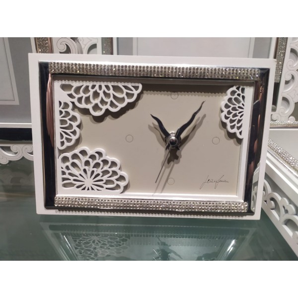 Orologio in legno traforato e argento "dalia" 9x13 cm bianco e tortora strass, fascia stretta - FEMIANO - FIRST CLASS
