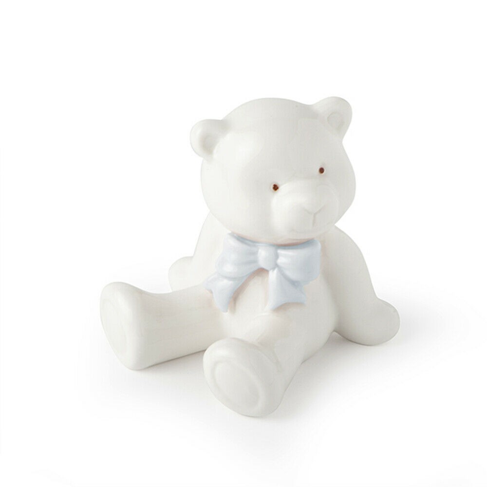 Orsetto in porcellana bianco 8 cm con fiocco blu - HERVIT CREATIONS