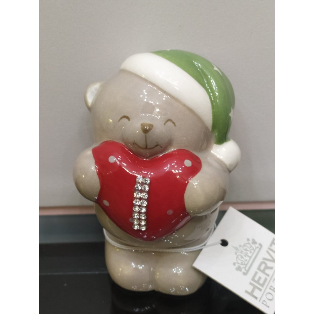 Orsetto in porcellana con cuore strass rosso 8 cm - HERVIT CREATIONS.