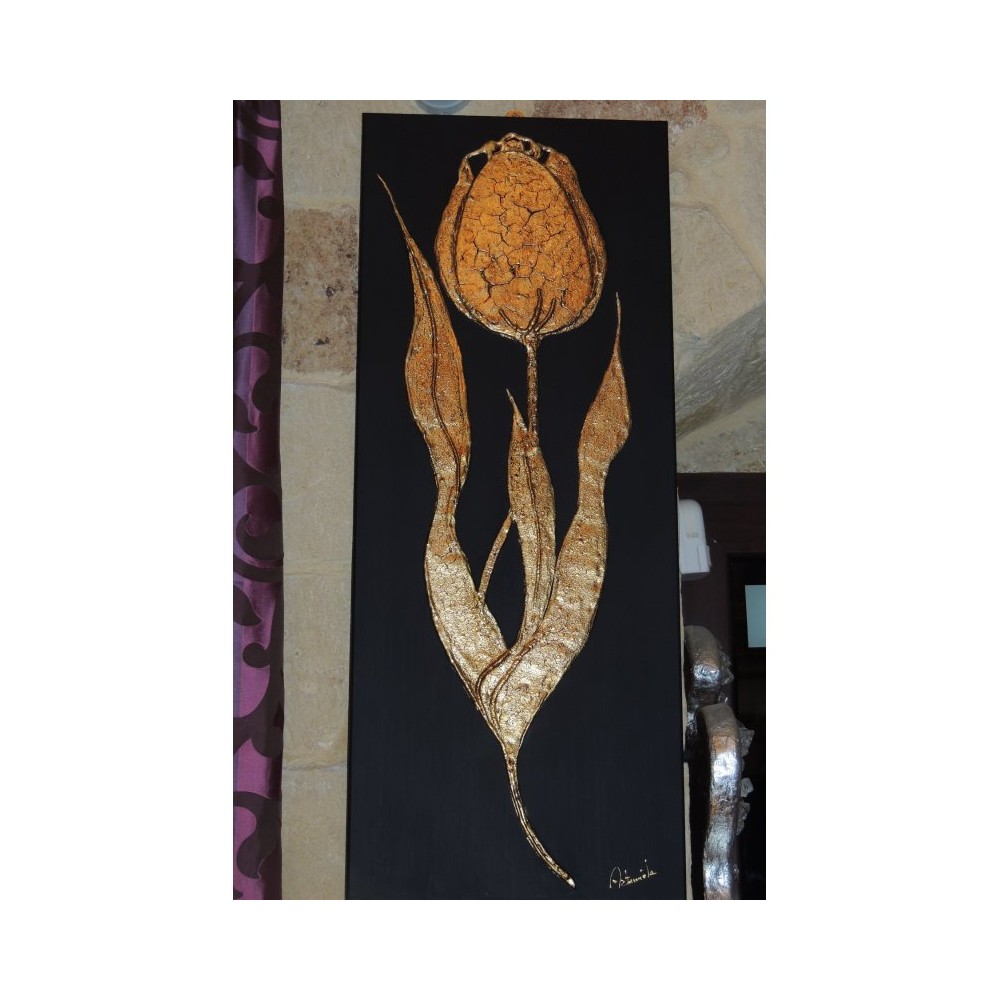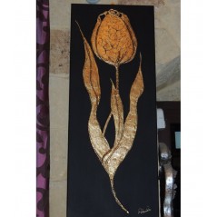 Pannello quadro in mdf "tulipano" in foglia oro 40x100 cm - ARTEMIDE.