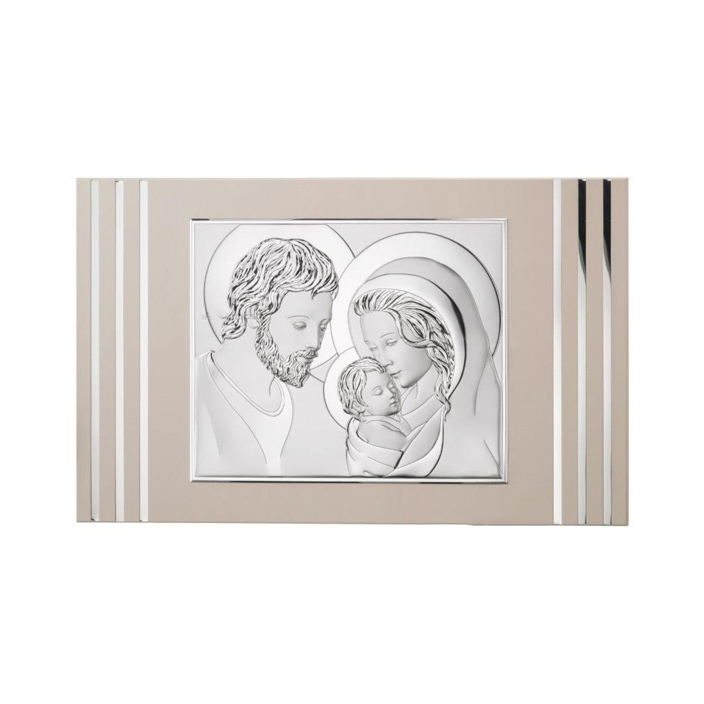 Pannello sacra famiglia in argento laminato 925 su pannello tortora 68 cm - VALENTI ARGENTI.