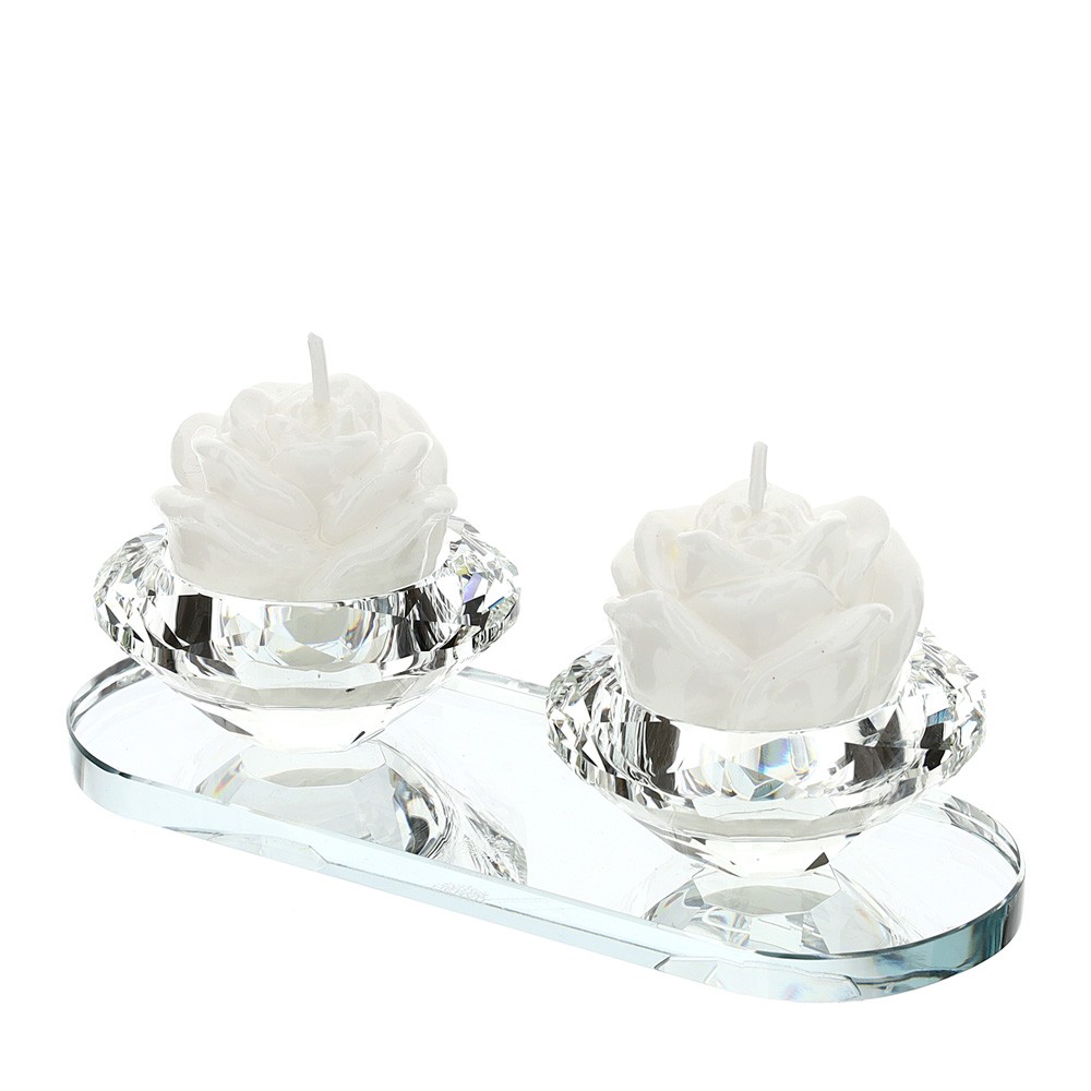 Partatealite in cristallo a due fiamme c/candela 16x4 cm - HERVIT CREATIONS