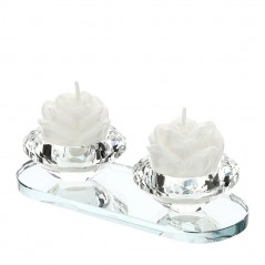 Partatealite in cristallo a due fiamme c/candela 16x4 cm - HERVIT CREATIONS.
