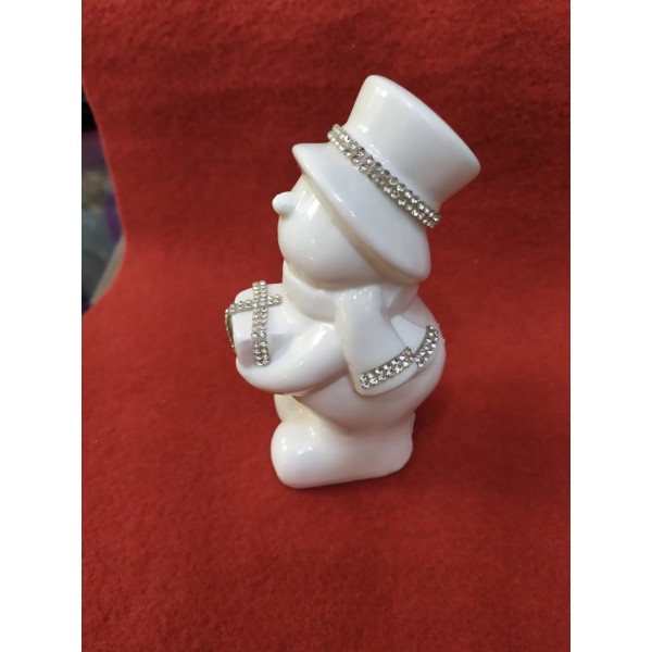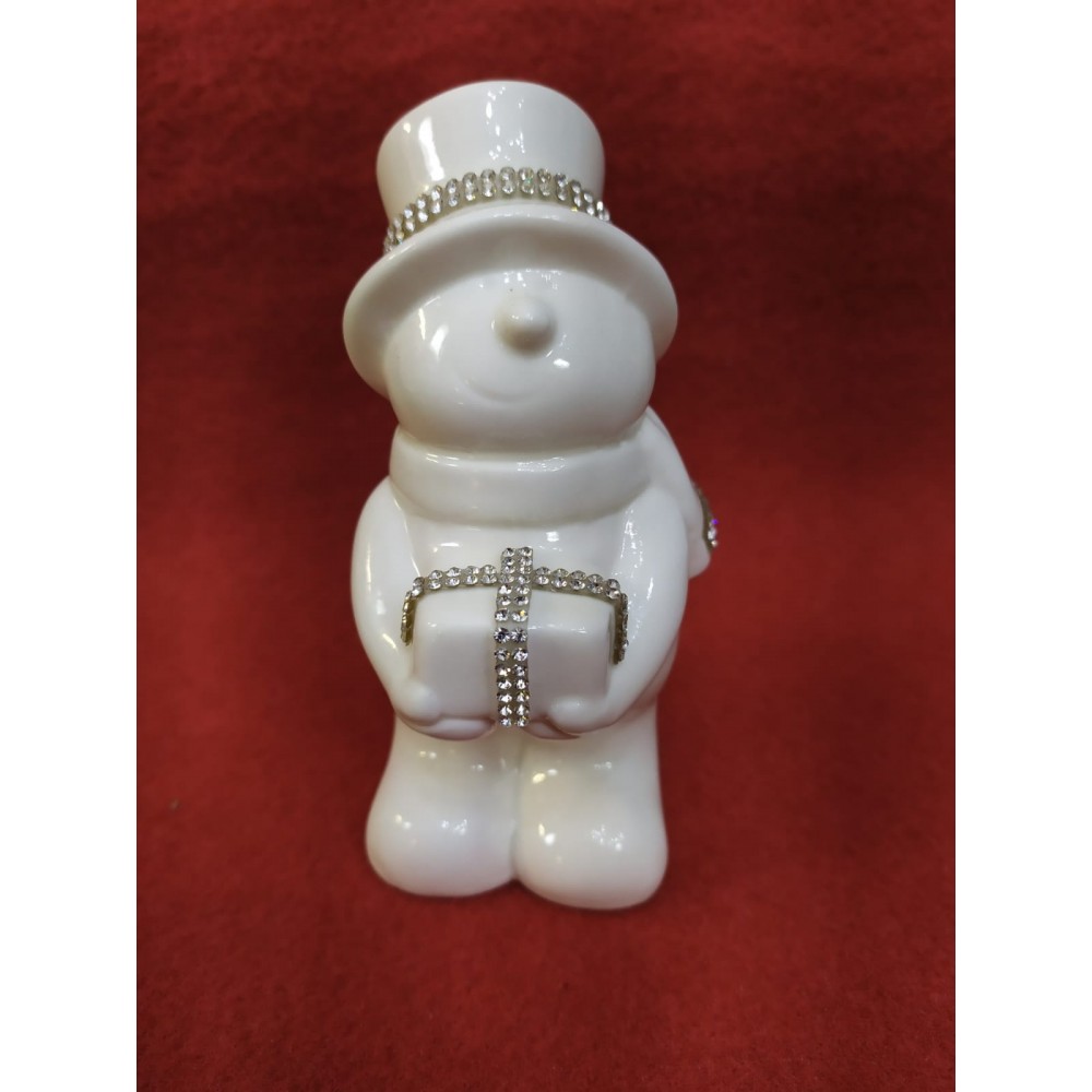 Personaggio in porcellana bianca Omino con dono 12 cm.