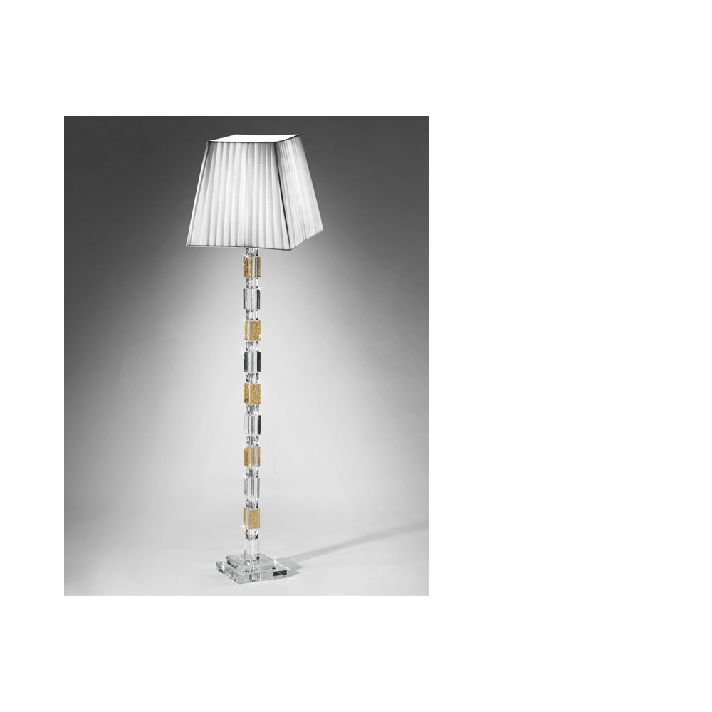 Piantana Lampada in cristallo da terrra con paralume in tessuto quadrato bianco - GIANFRANCO RANOLDI.