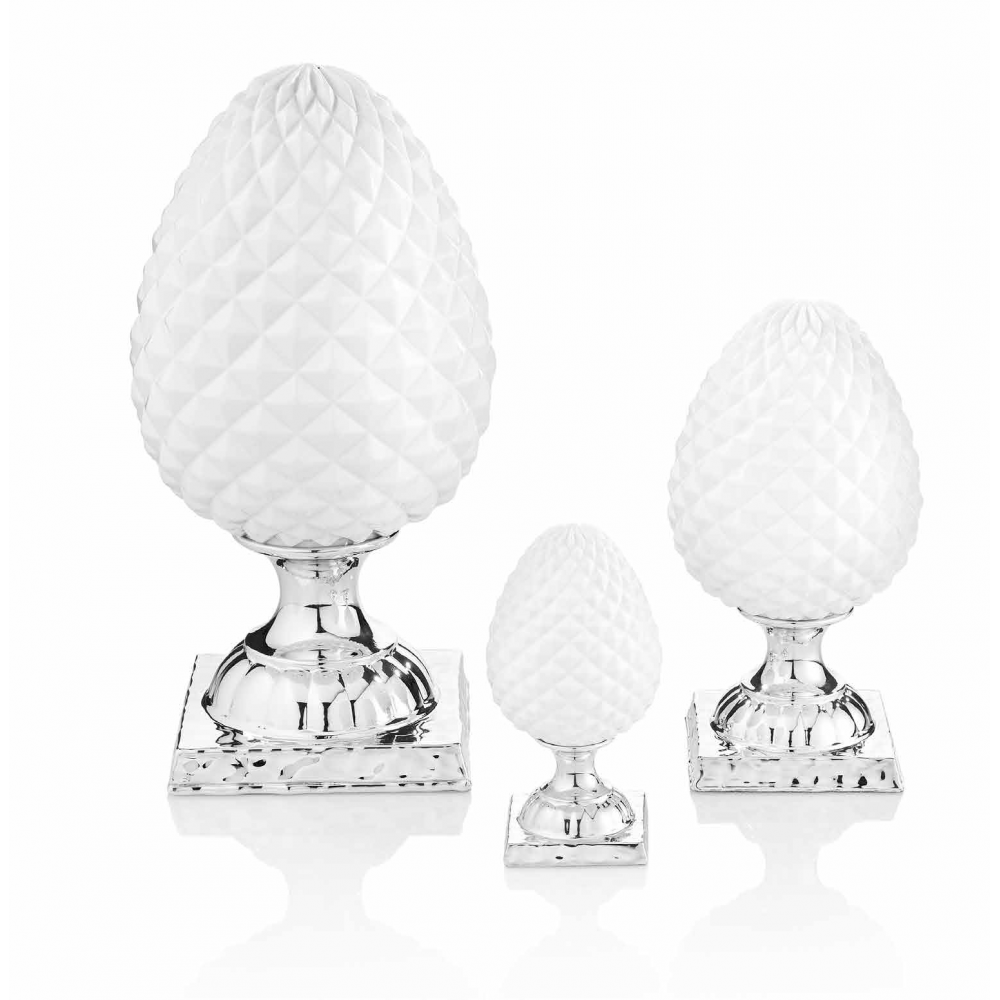 Pigna portafortuna media in resina bianca e argento "Diamante" 29 cm - OTTAVIANI HOME.
