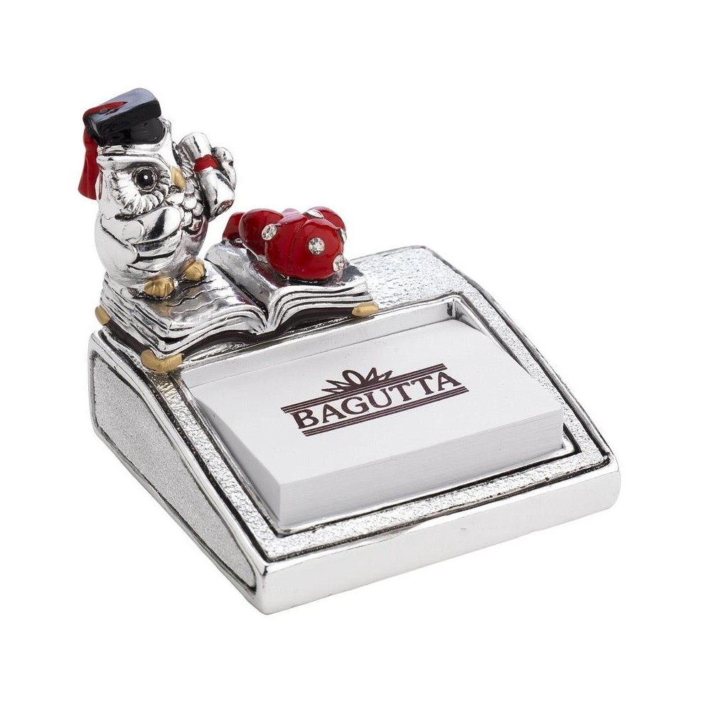 Porta post it in resina argentata gufo laureato - BAGUTTA