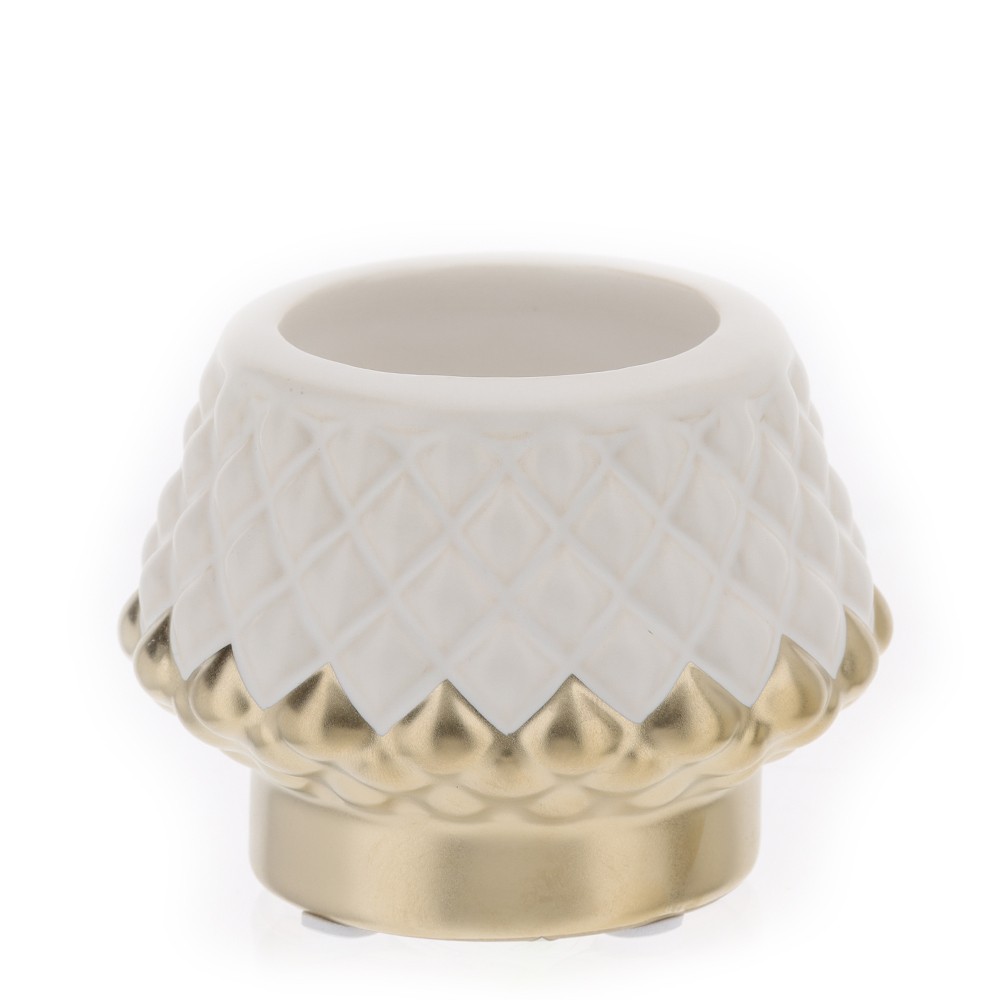 Portacandela in porcellana gres decoro oro champagne 9 cm - HERVIT CREATIONS.