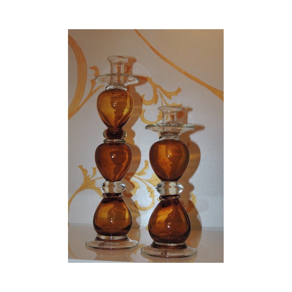 Portacandela in vetro "grande" ambra 38 cm