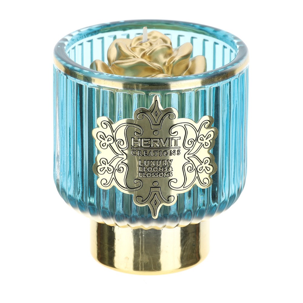 Portacandela vetro blu/oro con candela - HERVIT CREATIONS.