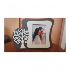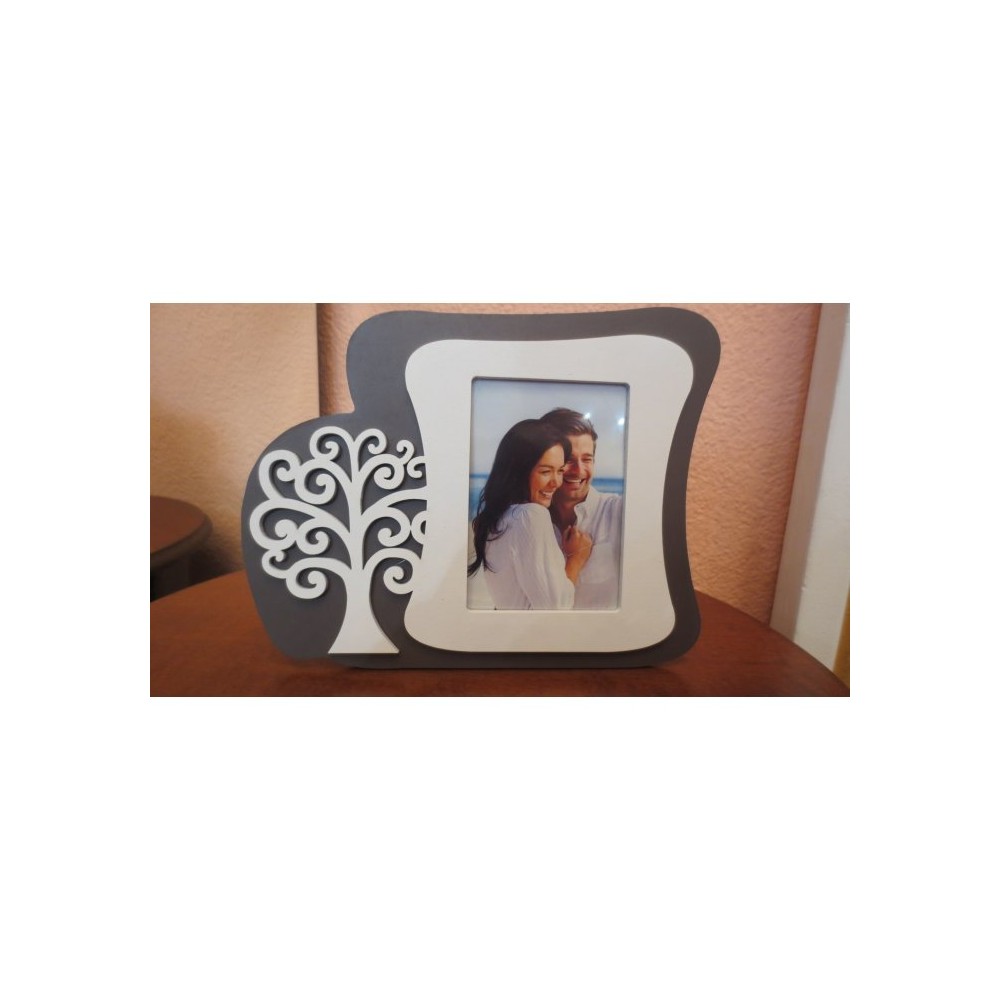 Portafoto cornice albero della vita in legno traforato bianco-grigio.