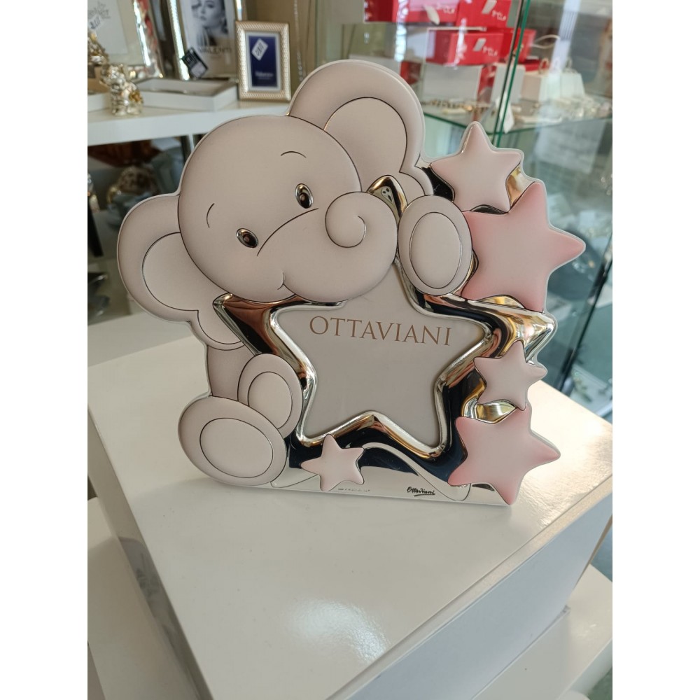 Portafoto cornice in argento miro silver "Elefantino tra le stelle" Rosa - OTTAVIANI HOME.