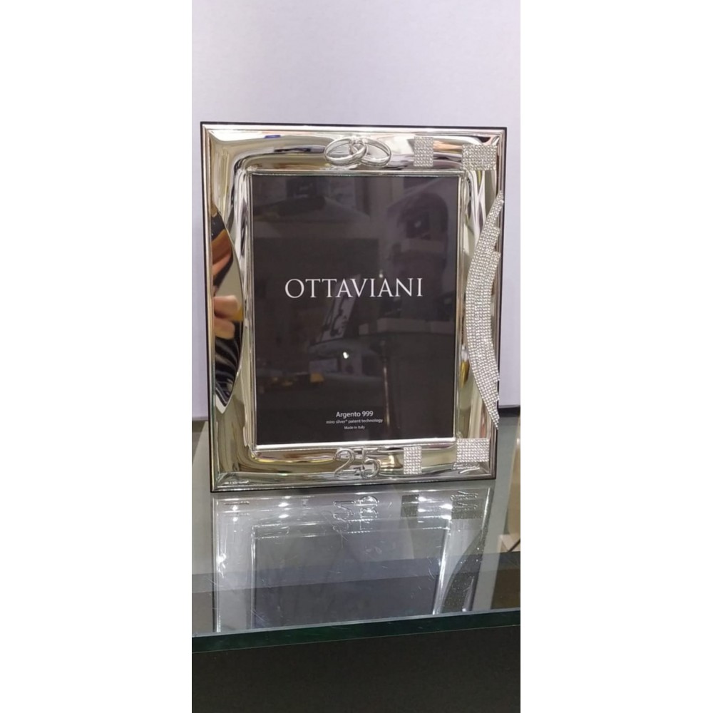 Portafoto cornice in argento e strass "Nozze d'argento" 13x18 cm - OTTAVIANI HOME.