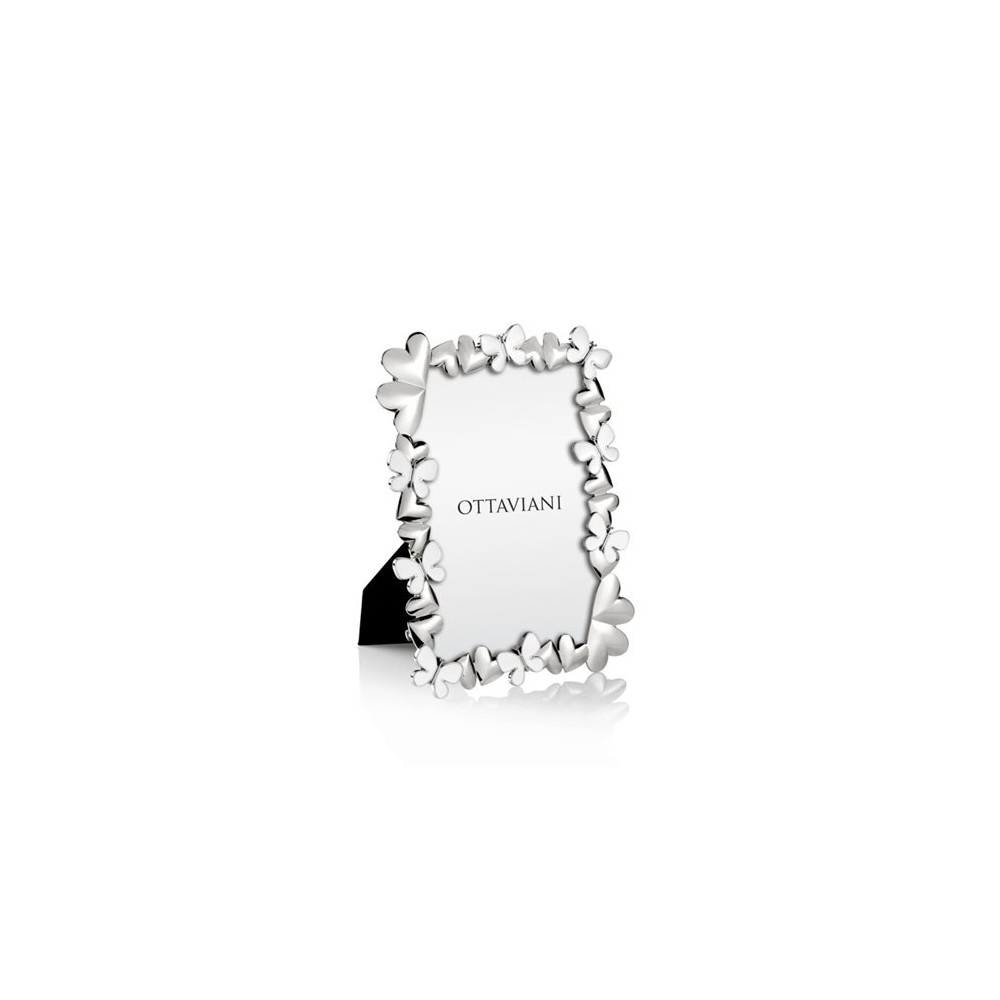 Portafoto cornice in metallo argento rodiato con cuori e farfalle glitter  - OTTAVIANI HOME