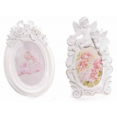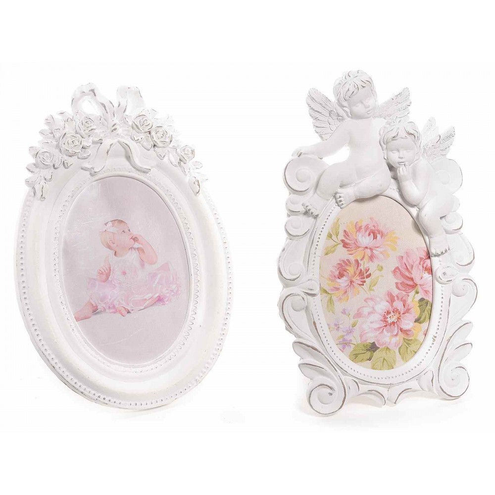 Portafoto cornice ovale in resina bianca anticata"rose fiocco" 23 cm da appoggiare.