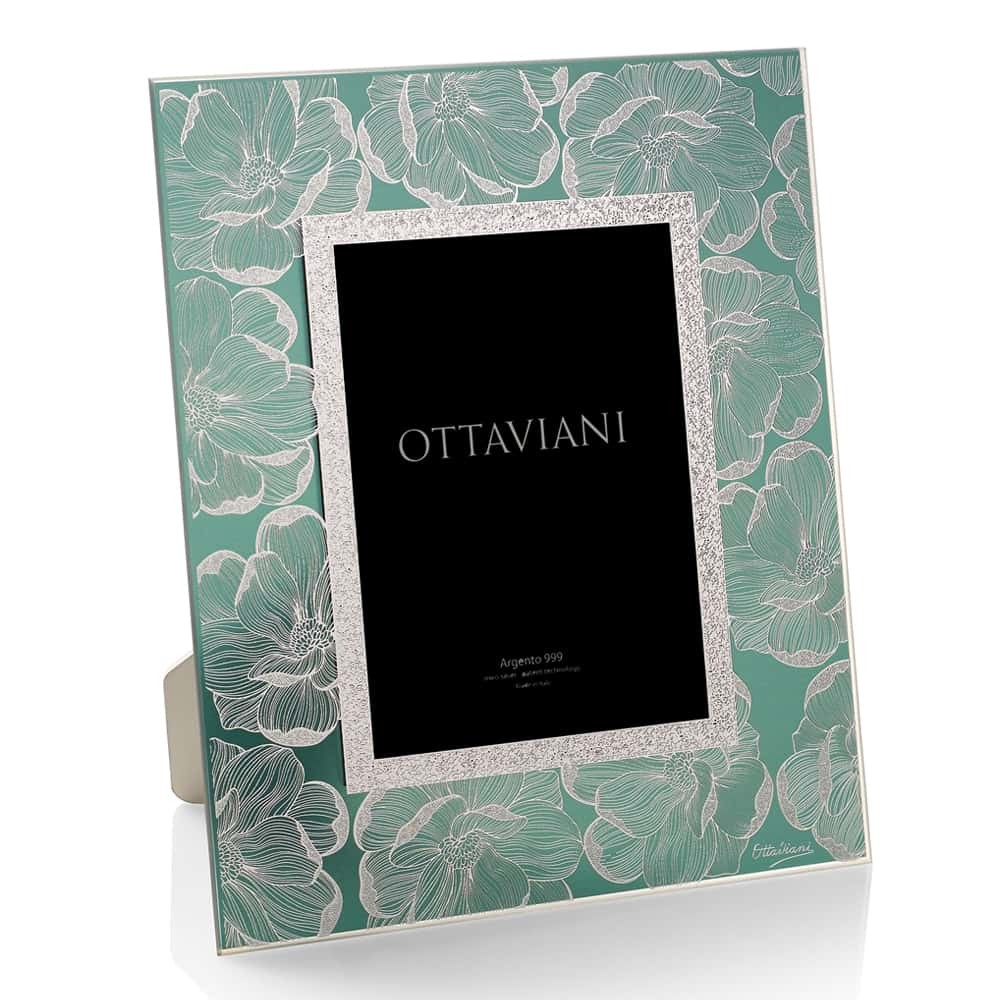 Portafoto cristasllo "Flora verde" foglia argento - OTTAVIANI HOME.