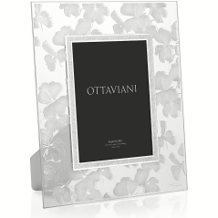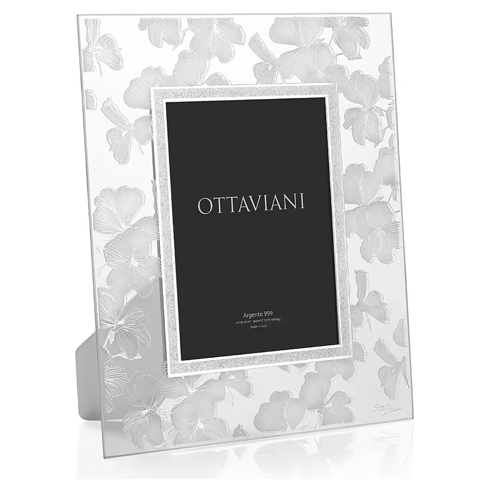 Portafoto in cristallo "fiori di pesco" foglia argento 13x18 cm - OTTAVIANI HOME,