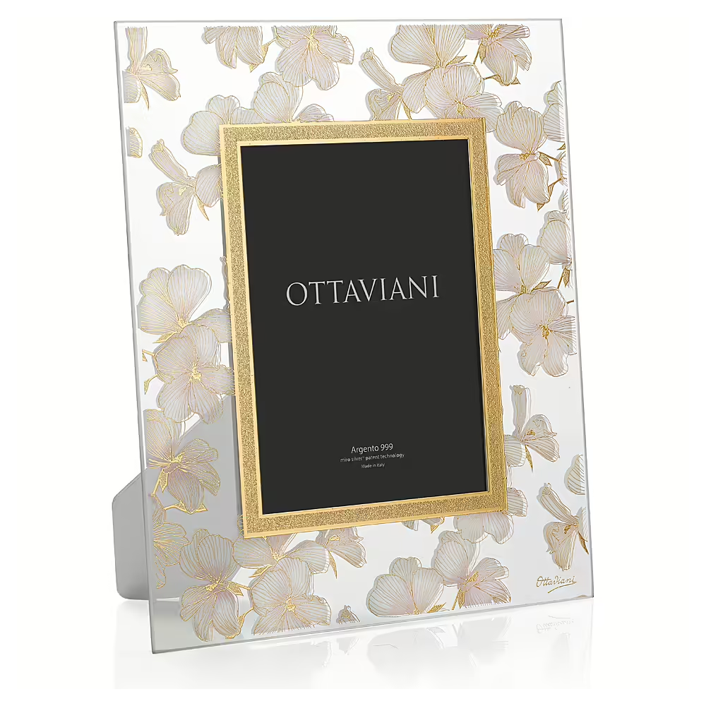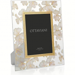 Portafoto in cristallo "fiori di pesco" foglia oro 13x18 cm - OTTAVIANI HOME,