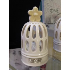 Portalight gabbietta fiore in porcellana e strass 10,5 cm.