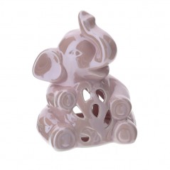 Portatealite elefante in porcellana traforata rosa perlato 14 cm - HERVIT CREATIONS.