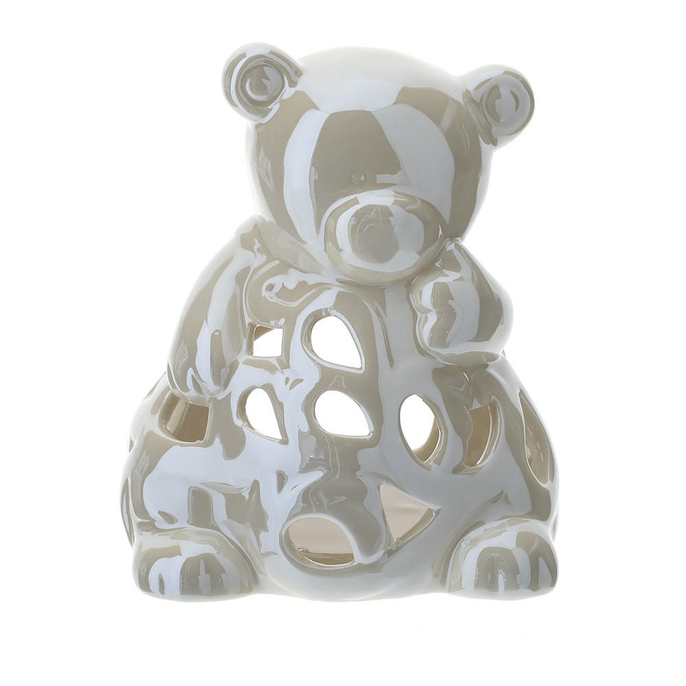 Portatealite orsetto in porcellana traforata 12 cm bianco perlata - HERVIT CREATIONS.