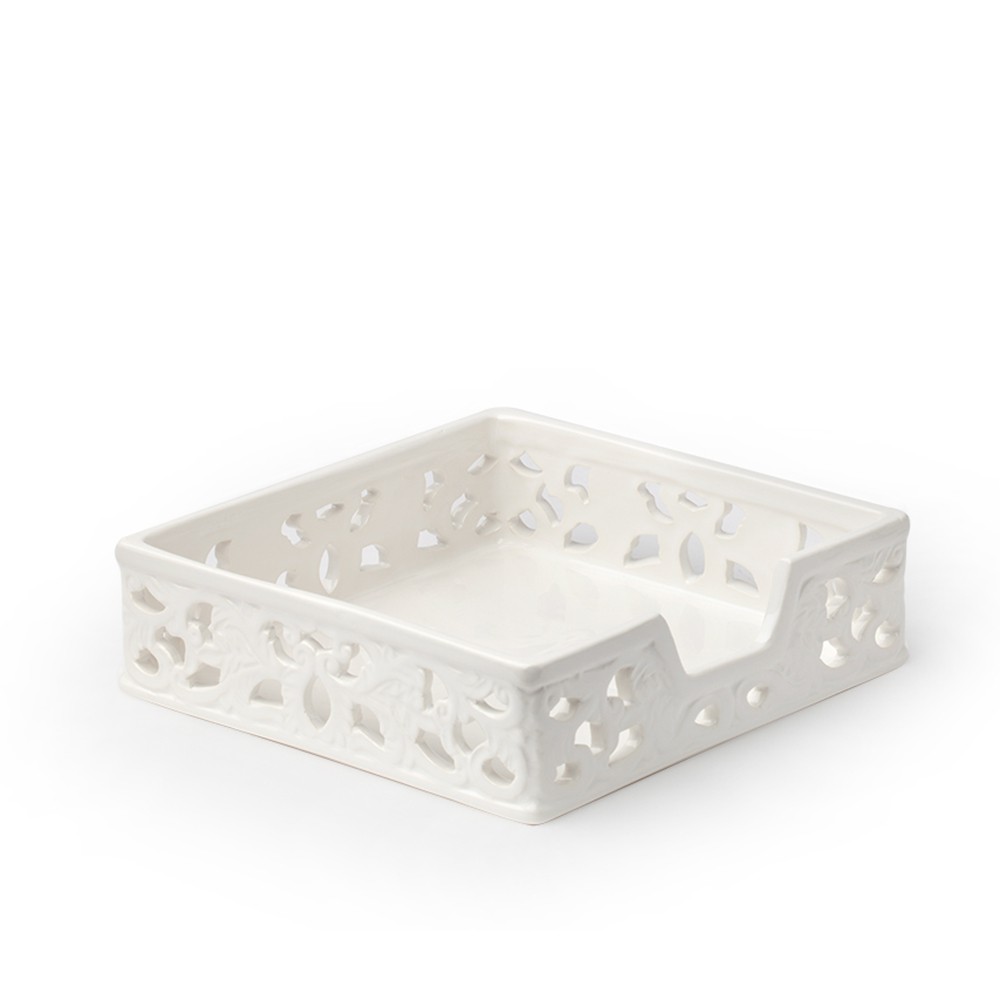 Portatovaglioli in ceramica traforata 20x20x6 cm bianco - HERVIT CREATIONS