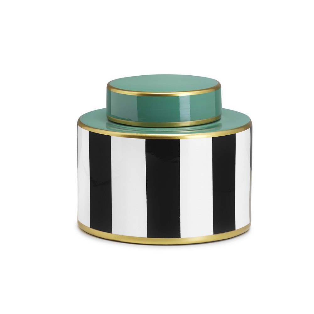 Realizzata  in porcellana lucida, caratterizzata da un design geometrico black and white e da una parte superiore in verde con rifiniture in oro sul bordo.