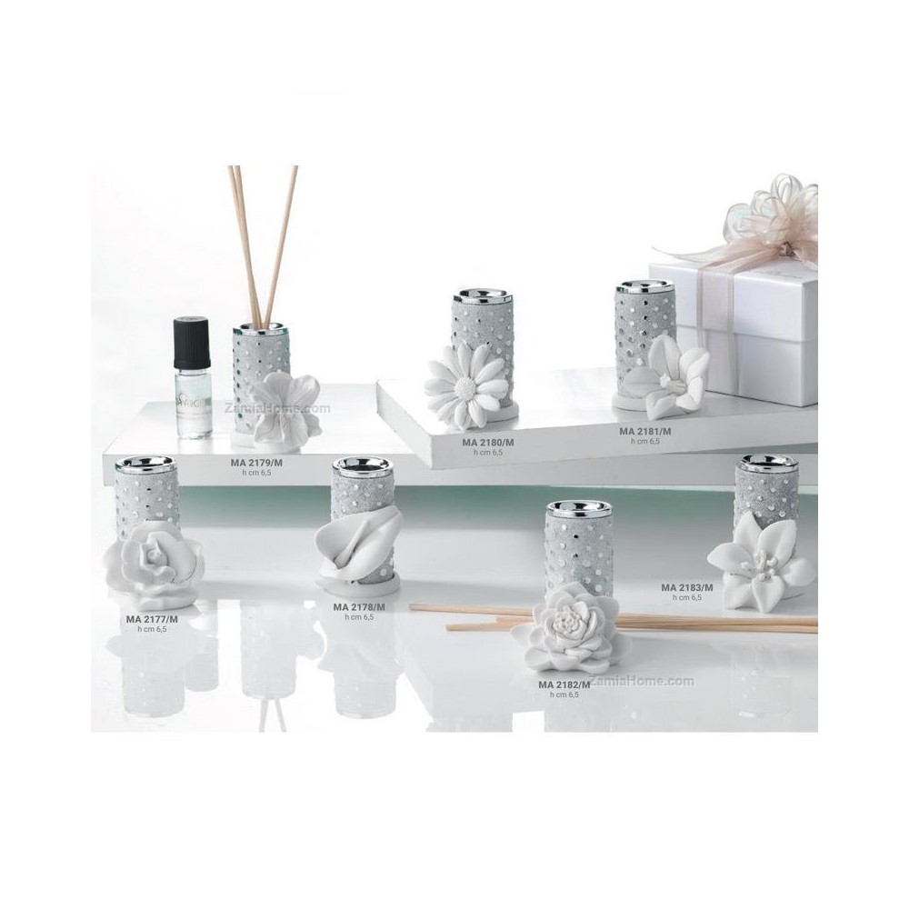 Profumatore con orchidea bianca resina argentata - Moda argenti.