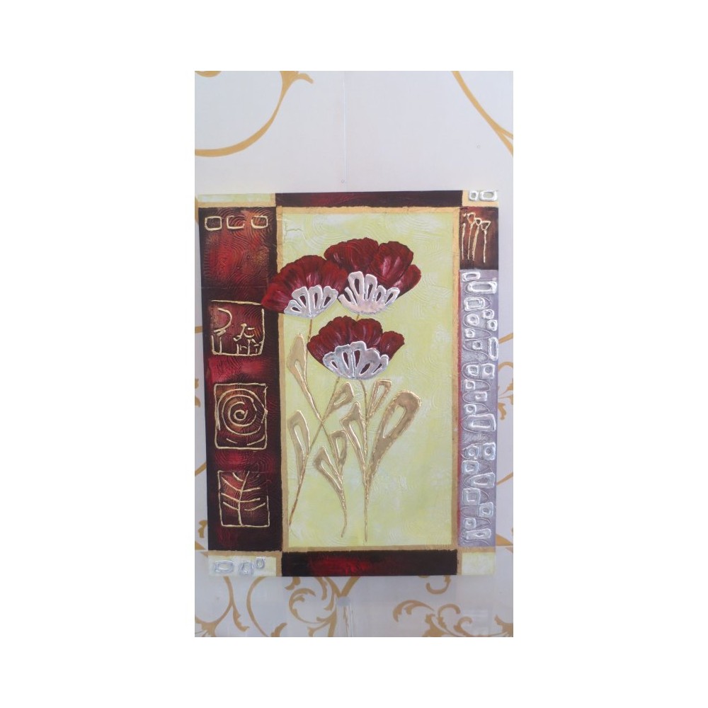 Quadro dipinto su tela canvas con foglia oro e argento "tulipani stilizzati" 60x80 cm - ARTEMIDE