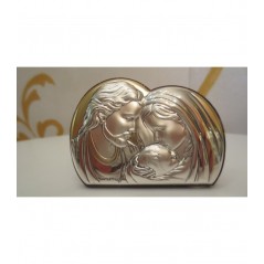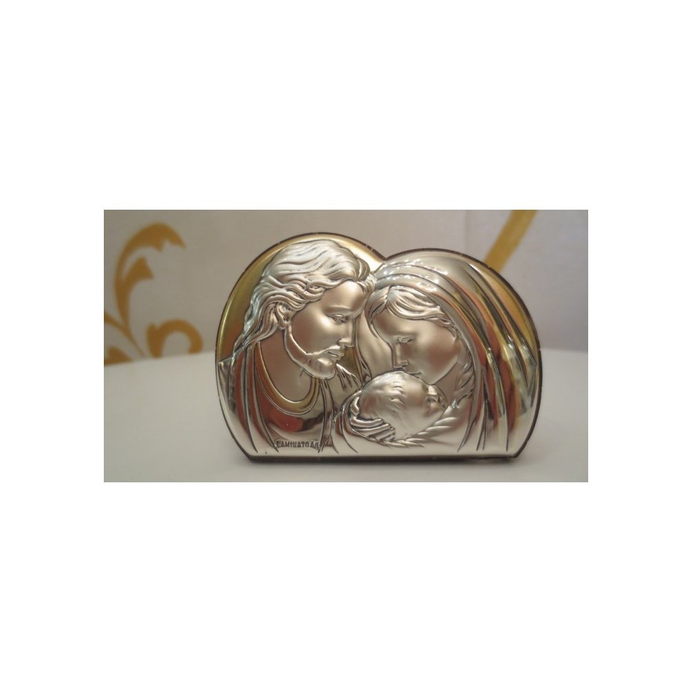 Sacra famiglia in argento e oro 925 laminato retro legno 7x5 cm - VALENTI ARGENTI.