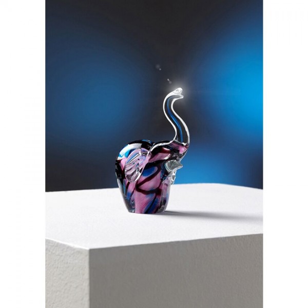 L'articolo è realizzato in cristallo trasparente raffigurante un elefantino l'interno è lavorato con polveri e striature di vari colori.