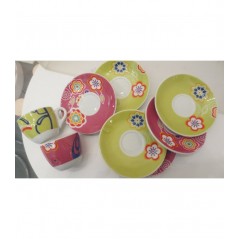 Set 2 tazze in ceramica con piattino assortite e astuccio regalo