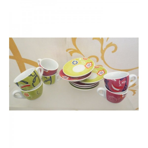 Set 2 tazze in ceramica con piattino assortite e astuccio regalo.
