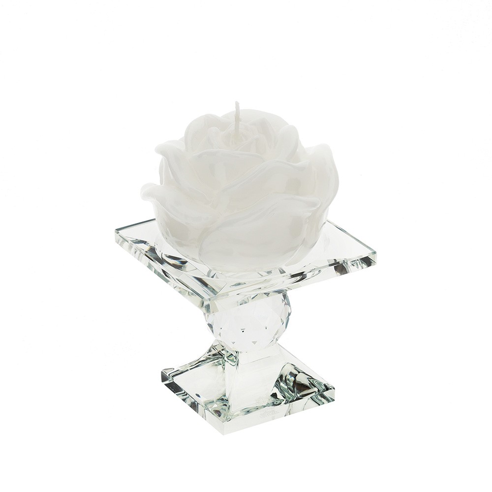 Set portacandela in cristallo c/candela rosa 8,5 cm - HERVIT CREATIONS.