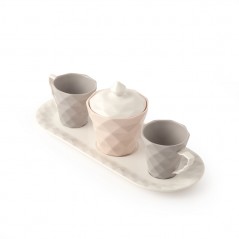 Set tete a tete in porcellana grigio/pesca 28x11 con vassoio 2 tazzine caffè e zuccheriera - HERVIT CREATIONS