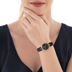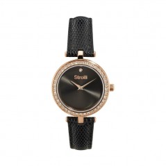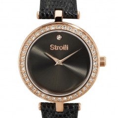 STROILI 30 mm - Orologio solo tempo con cinturino in pelle nero, cassa in acciaio rosato.