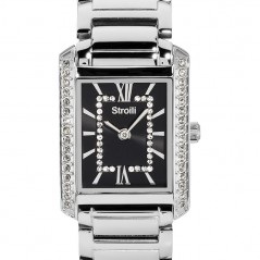STROILI Westminster - Orologio DONNA da polso solo tempo con cassa e cinturino in acciaio e quadrante nero con strass.