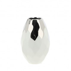 Vaso gres "Esagoni" bianco e argento 13x21 cm - HERVIT CREATIONS