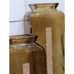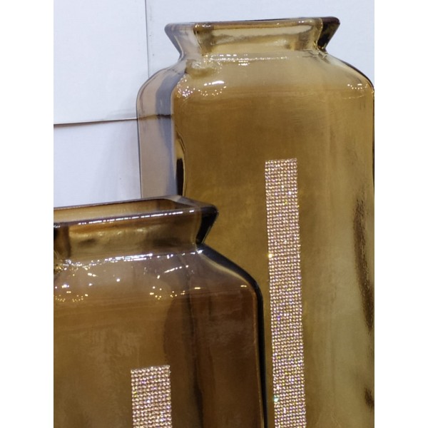 Vaso in vetro ambra con cristalli swarovski "alto glass cream" 55 cm
