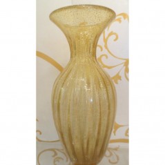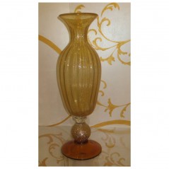 Vaso in vetro murano ambra con scaglie oro incamiciate - TRATTI MURANO .