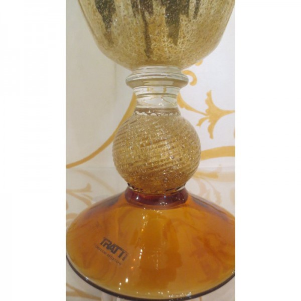 Vaso in vetro murano ambra con scaglie oro 24kt incamiciato - TRATTI MURANO