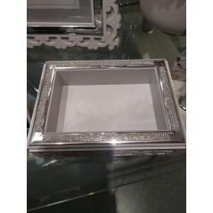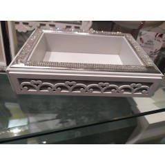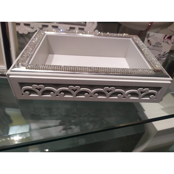 Vuotatasche in legno traforato e argento "decò" 13x18 bianco e grigio con strass - FEMIANO - FIRST CLASS