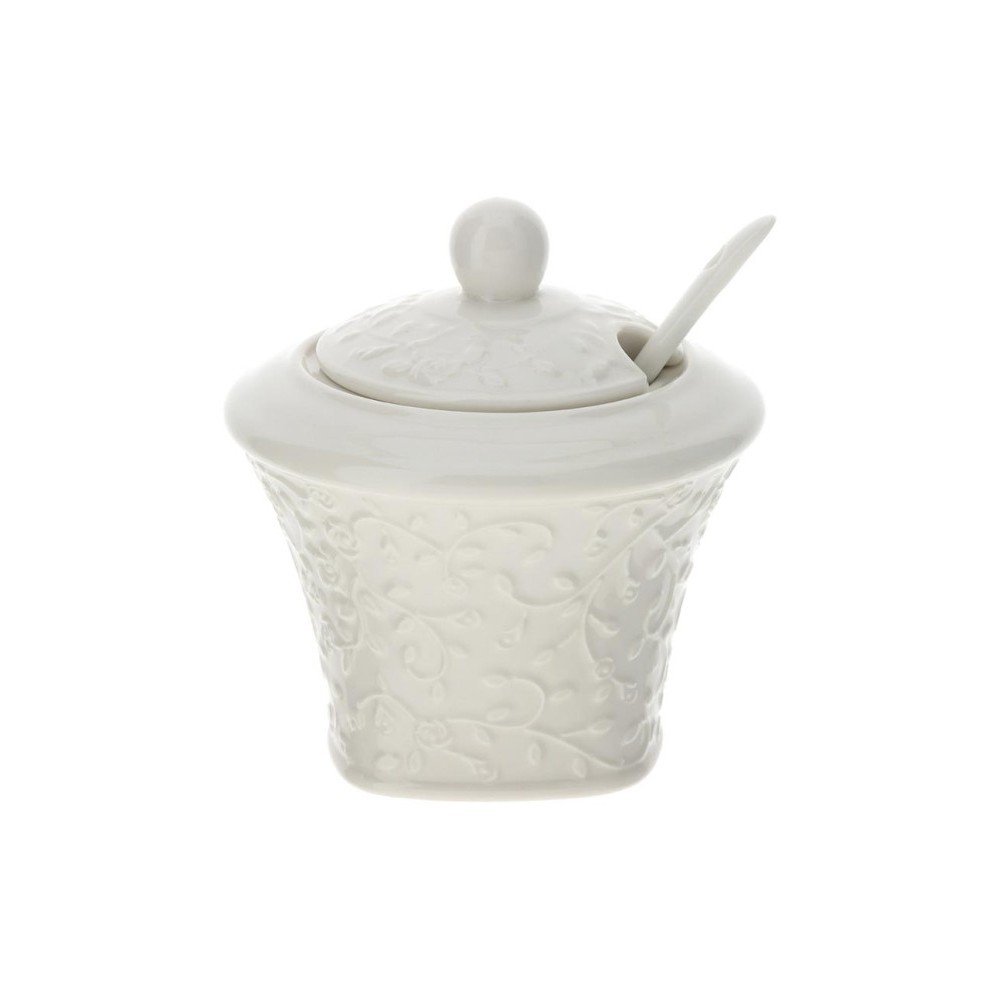 Zuccheriera con coperchio in porcellana romance bianca 10 cm - HERVIT CREATIONS.