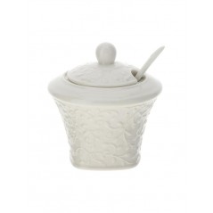Elegante accessorio per la tavola e la cucina, è caratterizzata da una lavorazione a rilievo con roselline: una zuccheriera raffinata perfetta per gli animi più romantici.